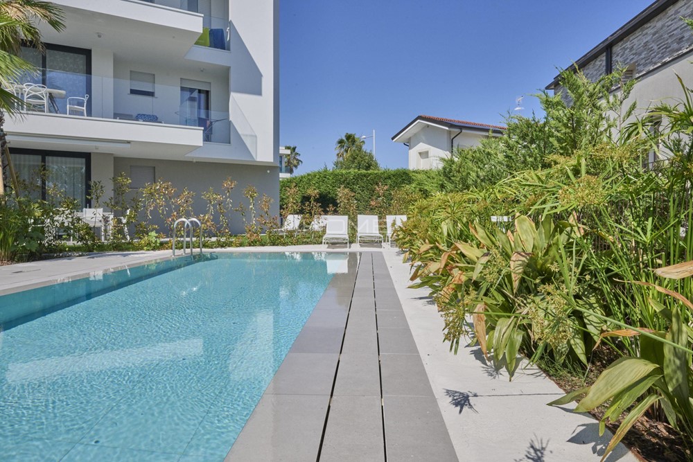 Located in a residential neighborhood behind Piazza Aurora in Jesolo Lido, we are offering apartments in a new residence with a swimming pool, consisting of only 12 units on the ground floor, first, or second floor, served by an elevator.