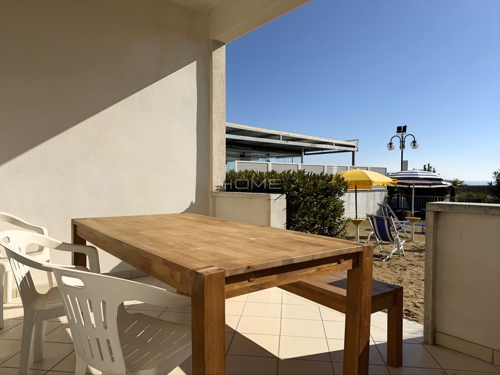 L'appartamento si trova al piano terra di una bivilla frontemare, composto da ingresso, soggiorno con cucina, zona notte che è comporta da 3 camere da letto, un bagno e terrazza. Inoltre, l'appartamento è dotato posto auto, lavatrice e servizio spiaggia.