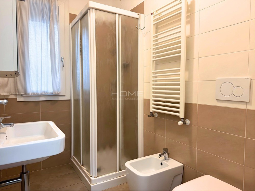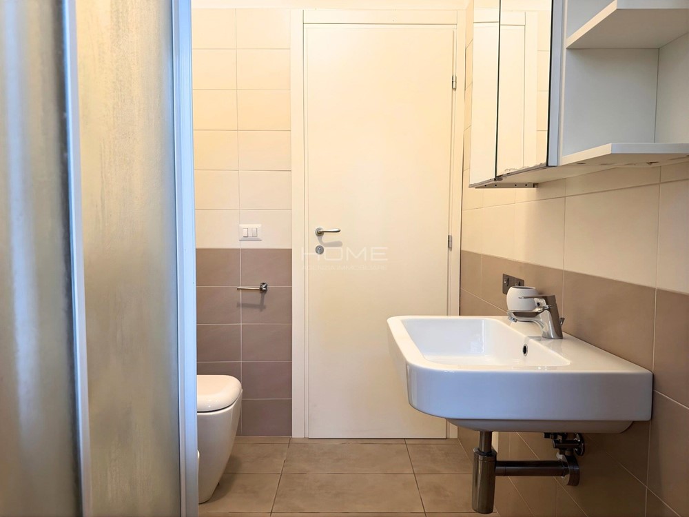 L'appartamento al piano terra si apre su un soggiorno dotato di un divano con cucina attrezzata con un piano induzione, forno e microonde, rendendola funzionale e pratica, inoltre troviamo anche un bagno finestrato completo di accessori e lavatrice. Un disimpegno porta alle due camere, una camera matrimoniale e una seconda camera singola. All'esterno un piccolo scoperto esclusivo, che offre uno spazio ideale per pranzare o cenare all'aperto e posto auto.