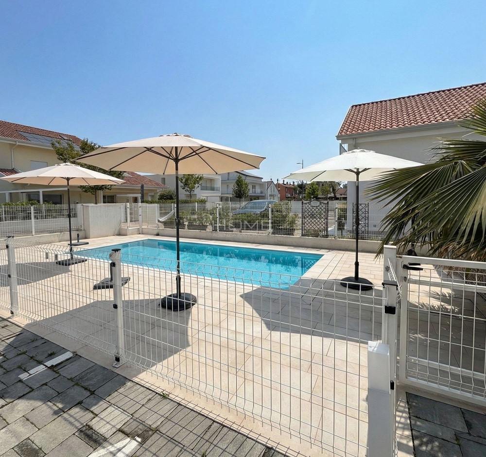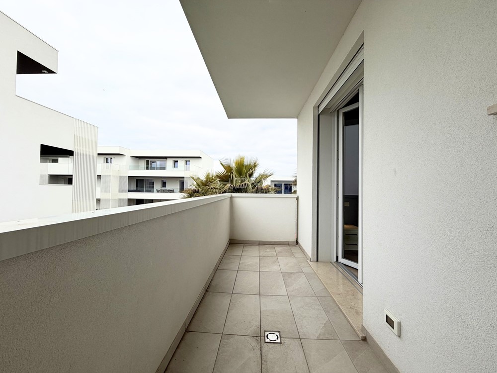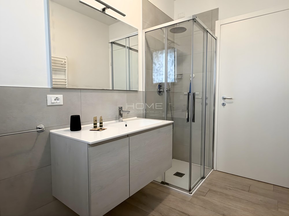 Appartamento al 1° piano di un residence con piscina in zona tranquilla ma centrale. L'appartamento al piano terra è composto da soggiorno con angolo cottura, 2 bagni e 2 camere e terrazza abitabile. E' compresa l'aria condizionata, lavatrice, lavastoviglie e posto auto. Servizio piscina disponibile dal 01/06 al 15/09