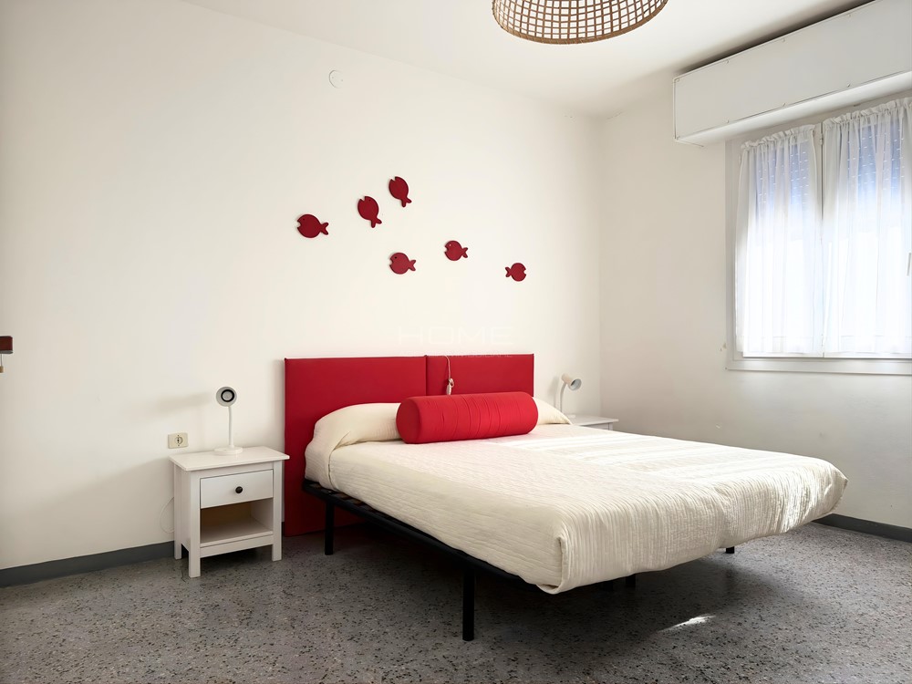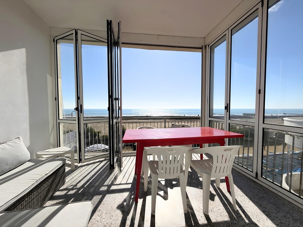 Die Wohnung befindet sich im ersten Stock einer Doppelhaushälfte direkt am Meer. Sie besteht aus einem Eingangsbereich, einem Wohnzimmer mit separater Küche sowie einem Schlafbereich mit drei Schlafzimmern und einem Badezimmer. Darüber hinaus ist die Wohnung mit Klimaanlage, Parkplatz, Waschmaschine und Strandservice ausgestattet. Nicht geeignet für Gruppen junger Leute.