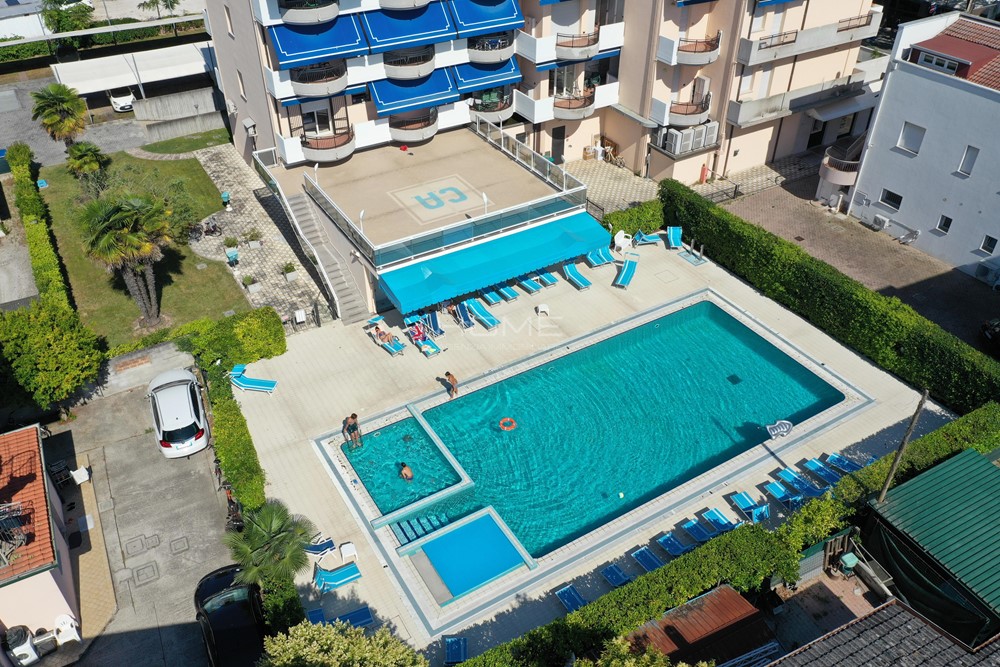 Wohnung im ersten Stock, mit Aufzug erreichbar, bestehend aus einem Eingang, der zu einem hellen Wohnzimmer mit Kochnische und Sofa sowie einer Terrasse führt. Die Unterkunft umfasst ein Doppelzimmer mit einem Doppelbett und einem Etagenbett sowie ein Badezimmer mit Fenster, komplett mit Duschkabine, Toilette und Waschmaschine. Die Wohnung ist klimatisiert, um maximalen Komfort zu gewährleisten. Im Aufenthalt inbegriffen sind ein überdachter Parkplatz, Zugang zum Pool.