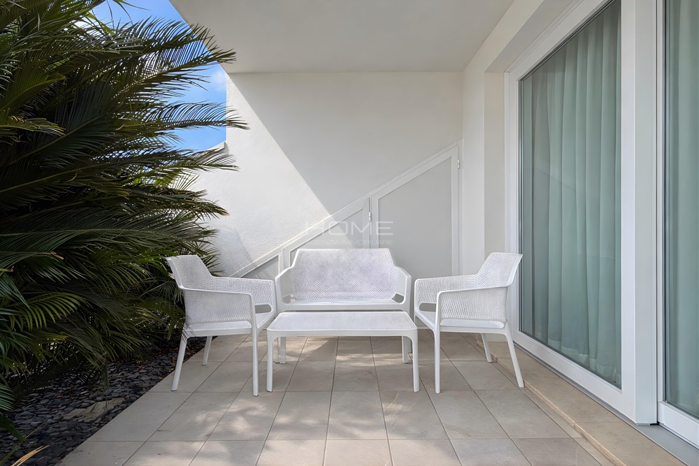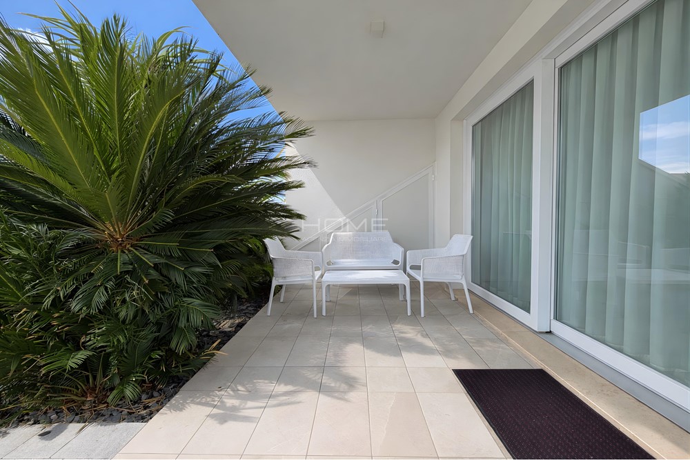 Erdgeschosswohnung in einer Wohnanlage mit Swimmingpool, gelegen in einer ruhigen und dennoch zentralen Lage. Die Wohnung besteht aus einem Wohnzimmer mit Kochnische, 2 Bädern und 2 Schlafzimmern sowie einem privaten Außenbereich. Klimaanlage, Waschmaschine, Geschirrspüler und Parkplatz sind inklusive. Pool service verfügbar vom 01.06. bis 15.09