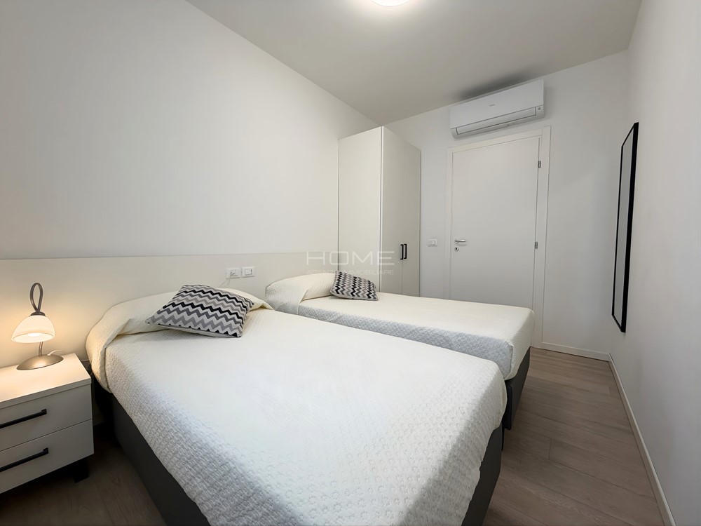 Wohnung im 1. Stock einer Wohnanlage mit Swimmingpool, gelegen in einer ruhigen und dennoch zentralen Lage. Die Wohnung besteht aus einem Wohnzimmer mit Kochnische, 2 Bädern, 2 Schlafzimmern und einer bewohnbaren Terrasse. Klimaanlage, Waschmaschine, Geschirrspüler und Parkplatz sind inklusive. Pool service verfügbar vom 01.06. bis 15.09