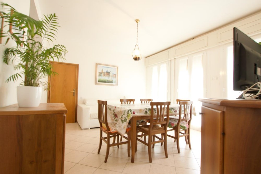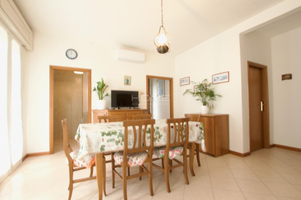 L'appartamento, situato al primo piano, offre un ampio e luminoso soggiorno, un cucinotto separato e una splendida terrazza, ideale per pranzare o cenare all'aperto. La camera matrimoniale è dotata di un letto matrimoniale e di un letto singolo, mentre la seconda camera ospita due letti singoli. Il bagno, finestrato, è completo di sanitari e doccia. Inoltre, c'è una terza stanza con un letto singolo e una lavatrice. Tra i servizi inclusi, troviamo un posto auto, aria condizionata e un servizio spiaggia disponibile dal 15/05 al 15/09.