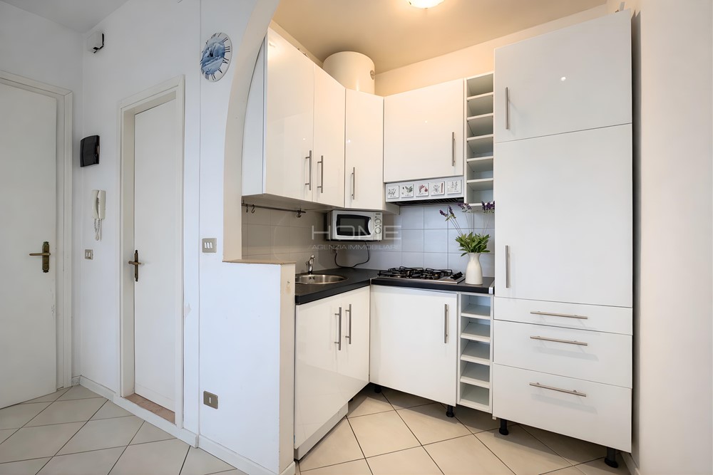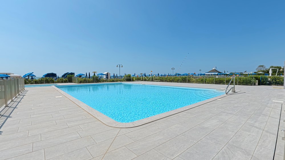 Appartamento situato al primo piano, composto da un ingresso che conduce a un luminoso soggiorno con angolo cucina. Include una camera matrimoniale, una cameretta con letto a castello e un bagno completo di box doccia e sanitari. La terrazza offre una vista frontale sul mare, ideale per pranzare o cenare all'aperto. L’appartamento è dotato di aria condizionata e lavatrice. Sono inclusi l'accesso alla piscina condominiale, il servizio spiaggia con ombrellone e due lettini, e un posto auto ( di piccole dimensioni).