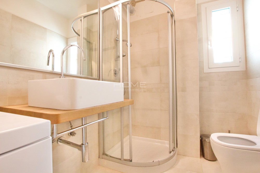 Appartamento al terzo piano, con una splendida vista mare, composto da ingresso con portoncino blindato, soggiorno con angolo cottura, una camera matrimoniale, una camera con letto a castello, un bagno principale finestrato con doccia e sanitari, e un secondo bagno di servizio con lavabo e wc. Completano l'immobile una terrazza laterale con vista mare e numerosi comfort, tra cui aria condizionata, lavatrice, lavastoviglie, TV. Inclusi nel soggiorno anche un posto auto di dimensioni ridotte e un posto spiaggia, con ombrellone e due lettini/sdraio, disponibili dal 15 maggio al 15 settembre.