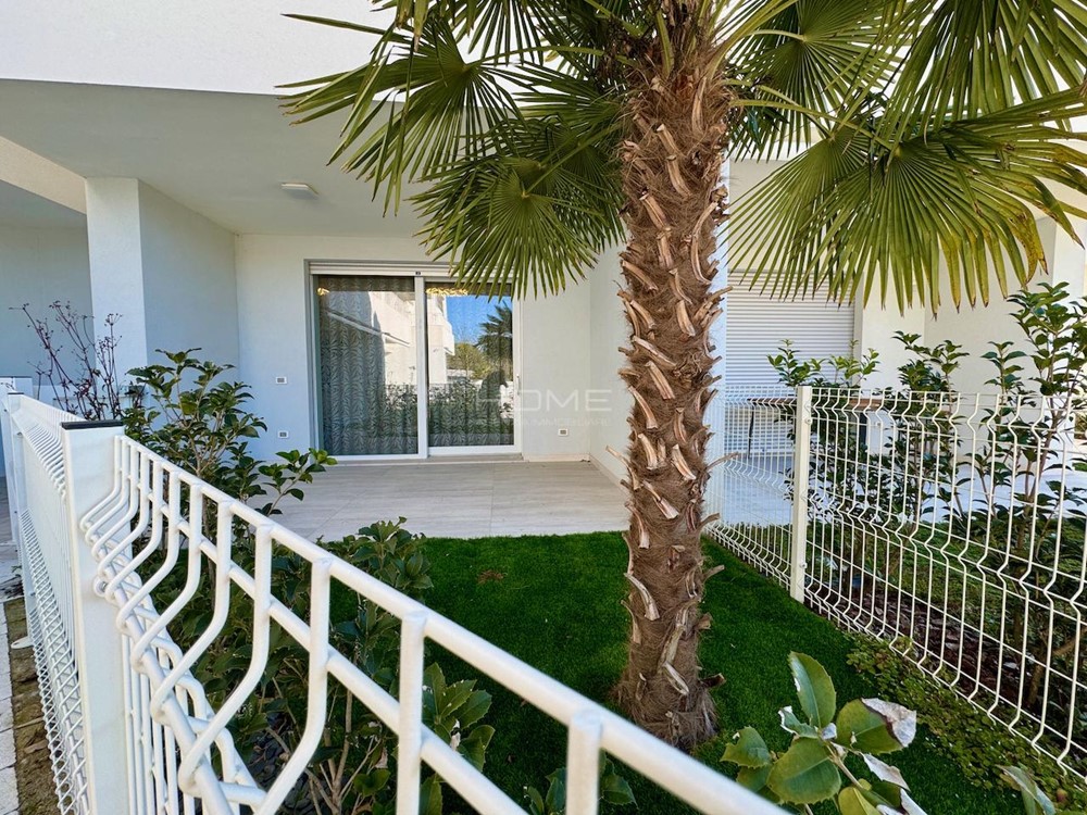 Appartamento al piano terra con ingresso indipendente e portoncino blindato. Ampio soggiorno con angolo cottura, perfetto per vivere momenti di relax. Il giardino esterno è ideale per pranzare o cenare all'aperto. Nella zona notte, una camera matrimoniale e una camera con letto a castello, oltre a un bagno finestrato con doccia e sanitari. L'appartamento è dotato di aria condizionata, lavatrice e lavastoviglie. È incluso un posto auto.