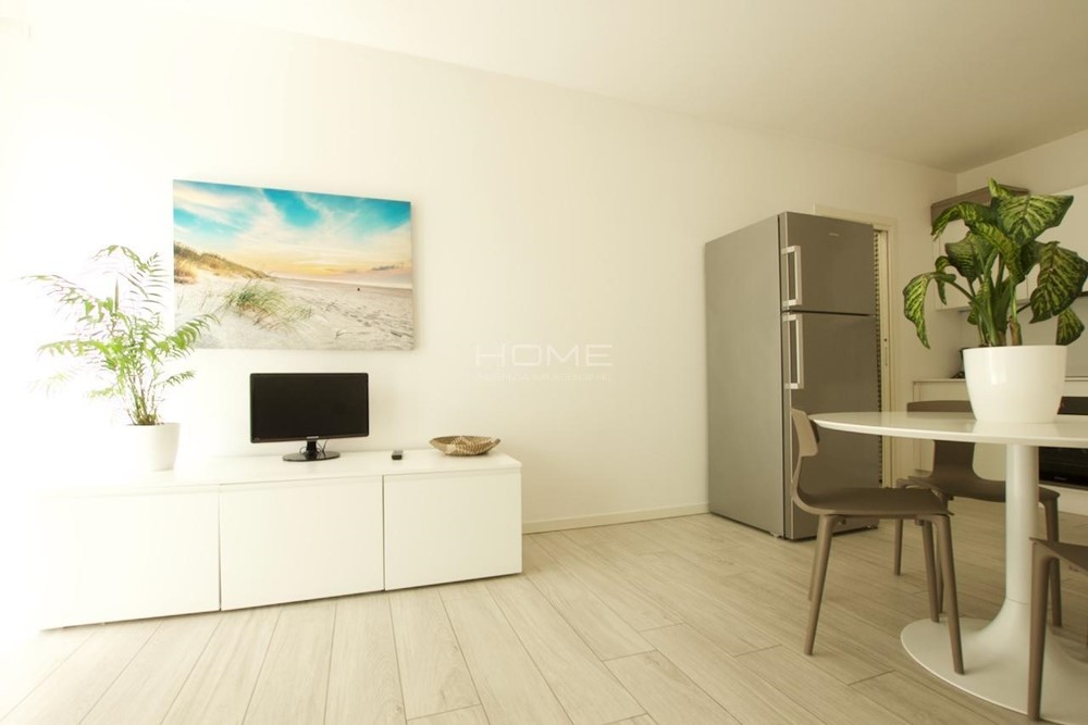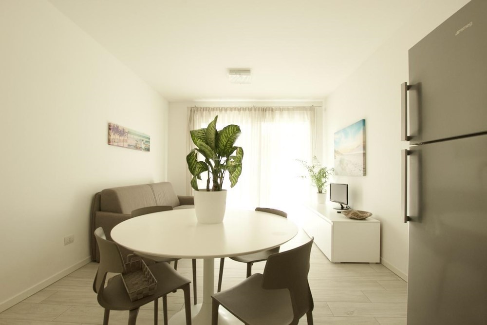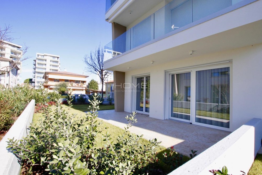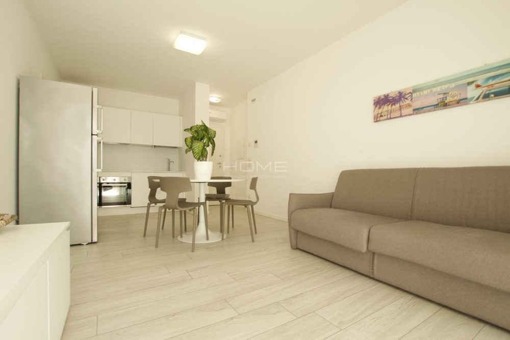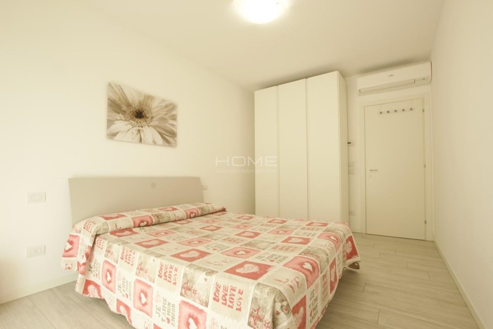 Appartamento al piano terra in un piccolo condominio di recente costruzione dotato di ascensore. L'immobile è composto da un ingresso con portoncino blindato, un ampio e luminoso soggiorno con angolo cottura, e una cucina attrezzata con lavastoviglie, piano a induzione e forno. Un disimpegno conduce a un ripostiglio e alla zona lavanderia con lavatrice. La camera matrimoniale è arredata con un letto matrimoniale e il bagno, finestrato, è completo di sanitari e doccia. All'esterno, un meraviglioso giardino di ampie dimensioni offre uno spazio ideale per pranzare o cenare all'aperto. Inoltre, l'appartamento include un garage interrato con box auto chiuso e un servizio spiaggia, che comprende un ombrellone e due lettini.