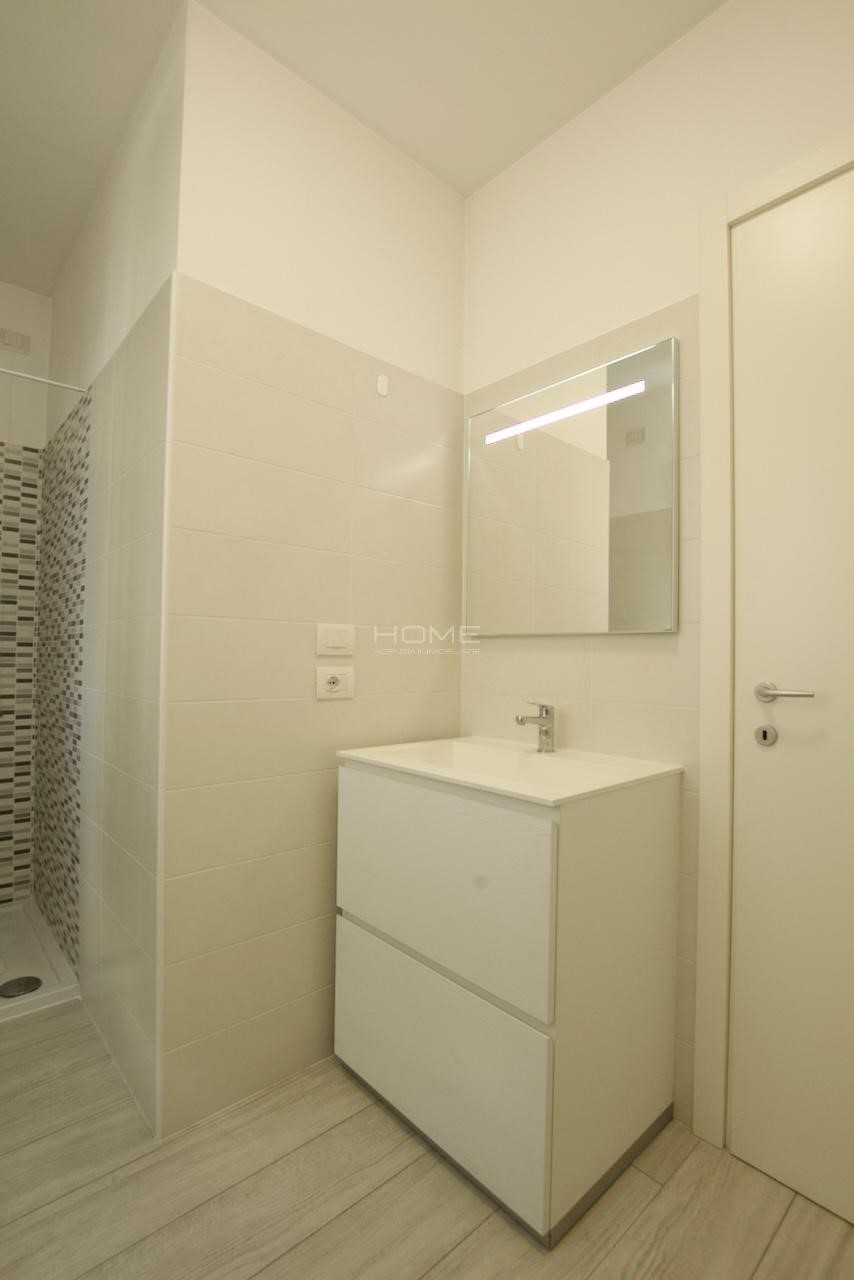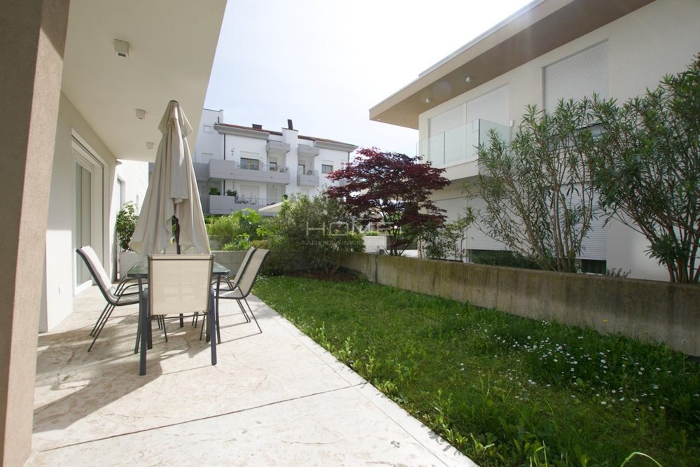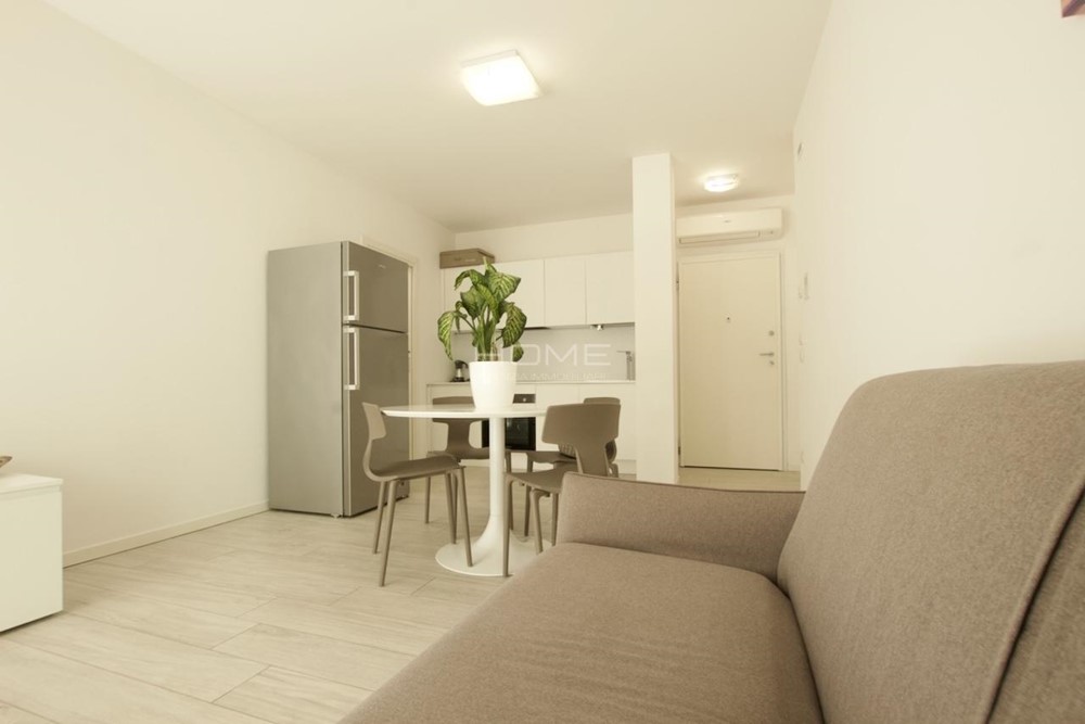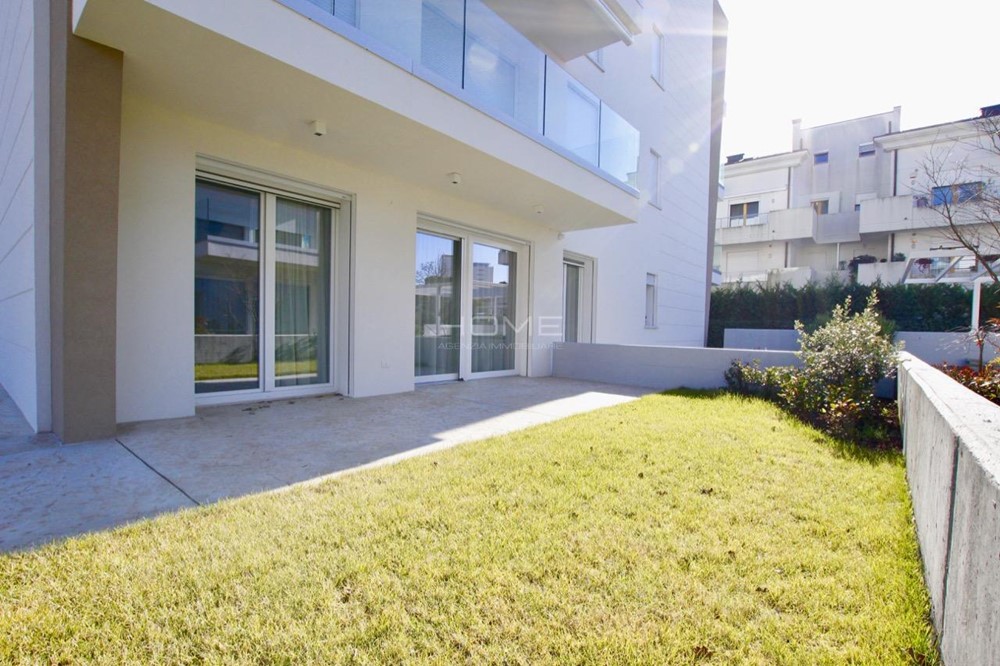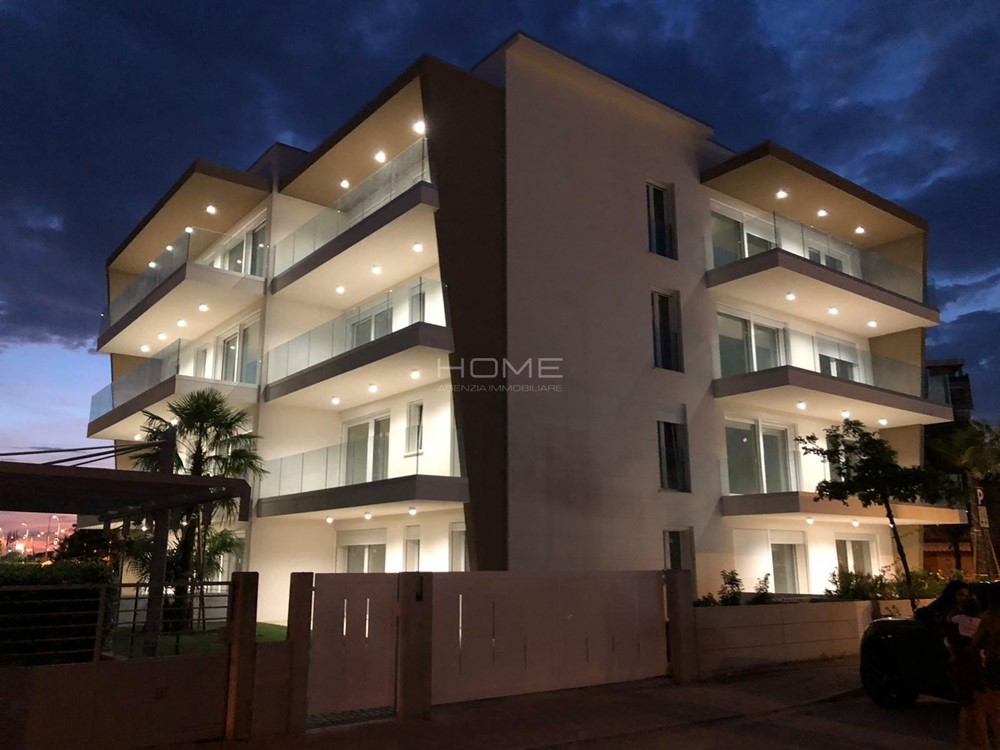Appartamento al piano terra in un piccolo condominio di recente costruzione dotato di ascensore. L'immobile è composto da un ingresso con portoncino blindato, un ampio e luminoso soggiorno con angolo cottura, e una cucina attrezzata con lavastoviglie, piano a induzione e forno. Un disimpegno conduce a un ripostiglio e alla zona lavanderia con lavatrice. La camera matrimoniale è arredata con un letto matrimoniale e il bagno, finestrato, è completo di sanitari e doccia. All'esterno, un meraviglioso giardino di ampie dimensioni offre uno spazio ideale per pranzare o cenare all'aperto. Inoltre, l'appartamento include un garage interrato con box auto chiuso e un servizio spiaggia, che comprende un ombrellone e due lettini.