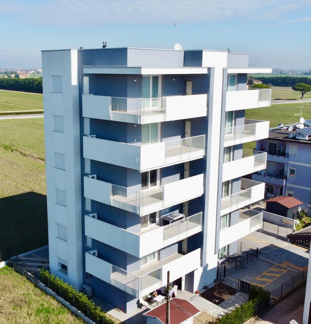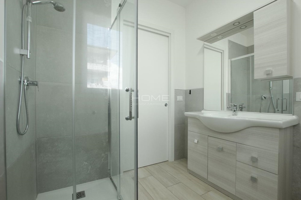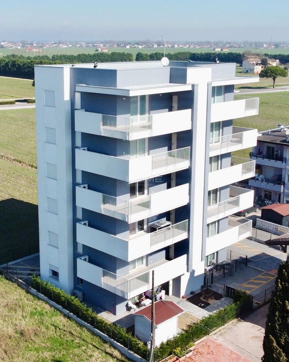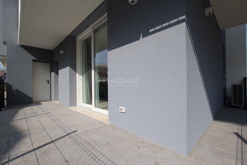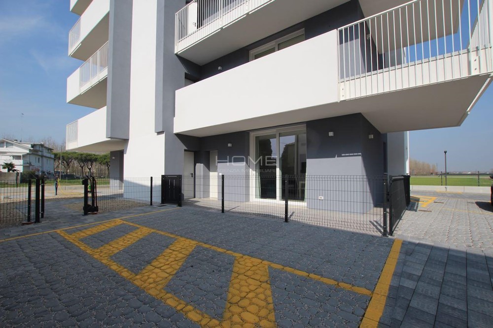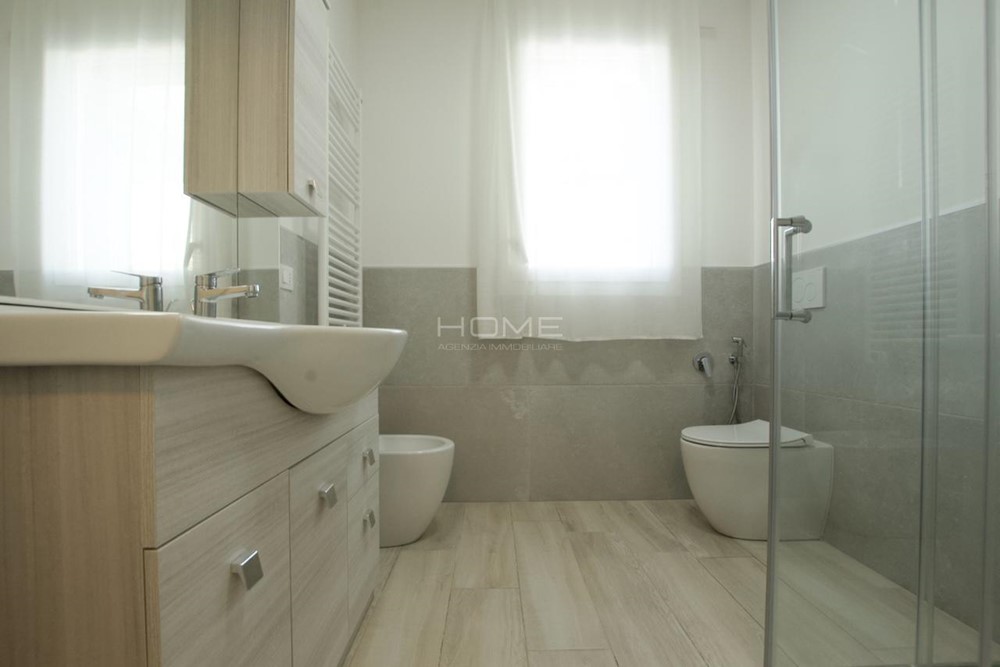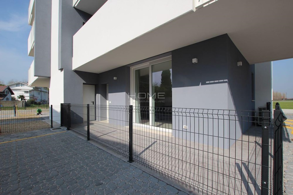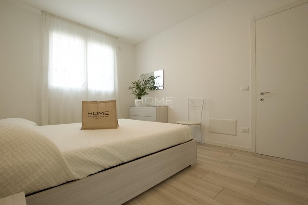 L'appartamento al piano terra si apre su un ingresso con portoncino blindato, che conduce a un luminoso soggiorno dotato di un divano. La zona cucina è attrezzata con un piano induzione, forno e lavastoviglie, rendendola funzionale e pratica. Nella zona notte, troviamo un bagno finestrato completo di box doccia e sanitari, insieme a una camera matrimoniale e una seconda camera con due letti a terra. All'esterno, un portico offre uno spazio ideale per pranzare o cenare all'aperto. Completano l'appartamento un piccolo ripostiglio con lavatrice e l'aria condizionata per garantire comfort durante i mesi più caldi.