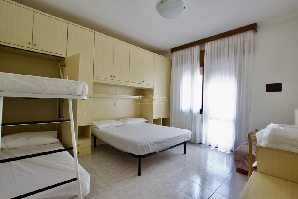L’appartamento è composto da un soggiorno con angolo cottura, una camera da letto con letto matrimoniale e letto a castello, e un bagno completo di doccia e sanitari. Per garantire un soggiorno confortevole, sono inclusi un posto auto riservato, un posto in spiaggia con un ombrellone e due lettini o sdraio, oltre all’aria condizionata.