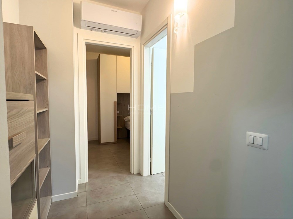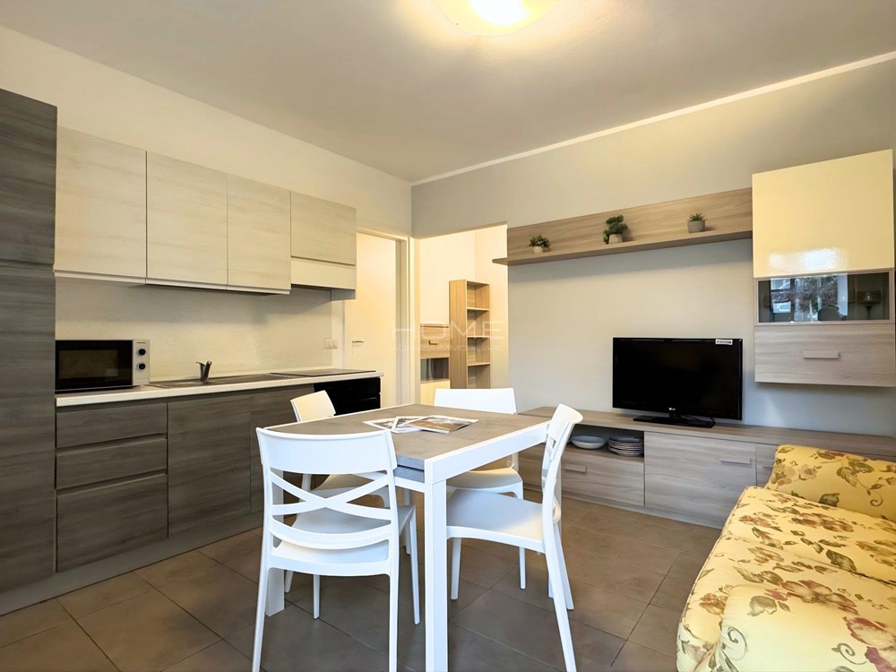 L'appartamento al piano terra si apre su un soggiorno dotato di un divano con cucina attrezzata con un piano induzione, forno e microonde, rendendola funzionale e pratica, inoltre troviamo anche un bagno finestrato completo di accessori e lavatrice. Un disimpegno porta alle due camere, una camera matrimoniale e una seconda camera singola. All'esterno un piccolo scoperto esclusivo, che offre uno spazio ideale per pranzare o cenare all'aperto e posto auto.