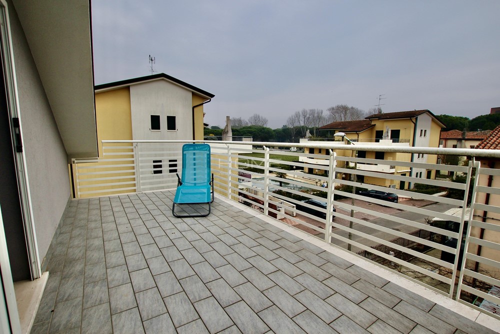 L'appartamento al piano primo si apre su un ingresso che conduce a un luminoso soggiorno dotato di un divano con zona cucina attrezzata con un piano induzione, forno e lavastoviglie e lavatrice, rendendola funzionale e pratica, inoltre troviamo anche un bagno finestrato completo di accessori. Nella zona notte al piano superiore, troviamo un bagno finestrato completo di box doccia e sanitari, insieme a una camera matrimoniale e una seconda camera matrimoniale. All'esterno due splendide terrazze abitabili, che offrono uno spazio ideale per pranzare o cenare all'aperto.