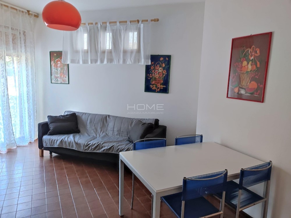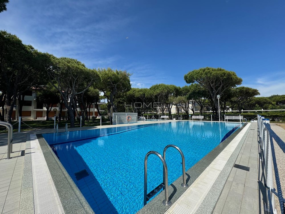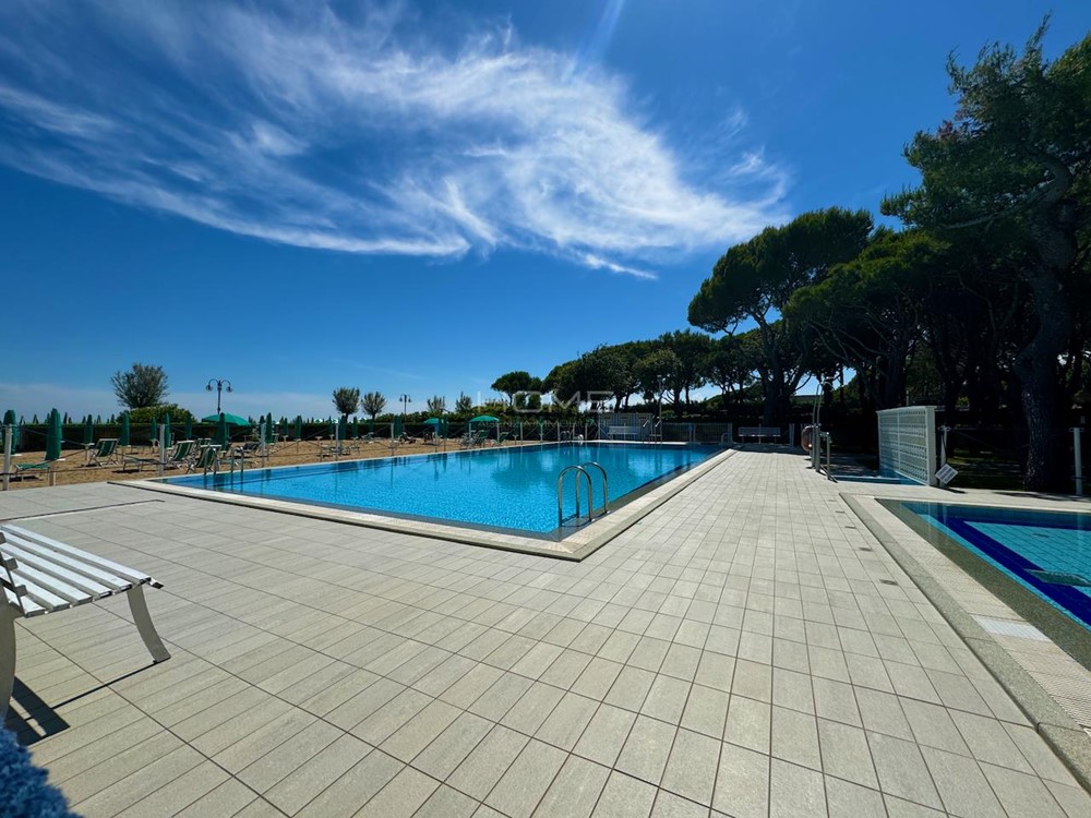 Appartamento al piano terra, composto da un soggiorno con angolo cottura e divano letto, una camera matrimoniale e un bagno con doccia. È dotato di lavatrice e aria condizionata. Il residence offre ampio parcheggio, spiaggia privata, piscina, ascensore e un bel giardino ben curato.