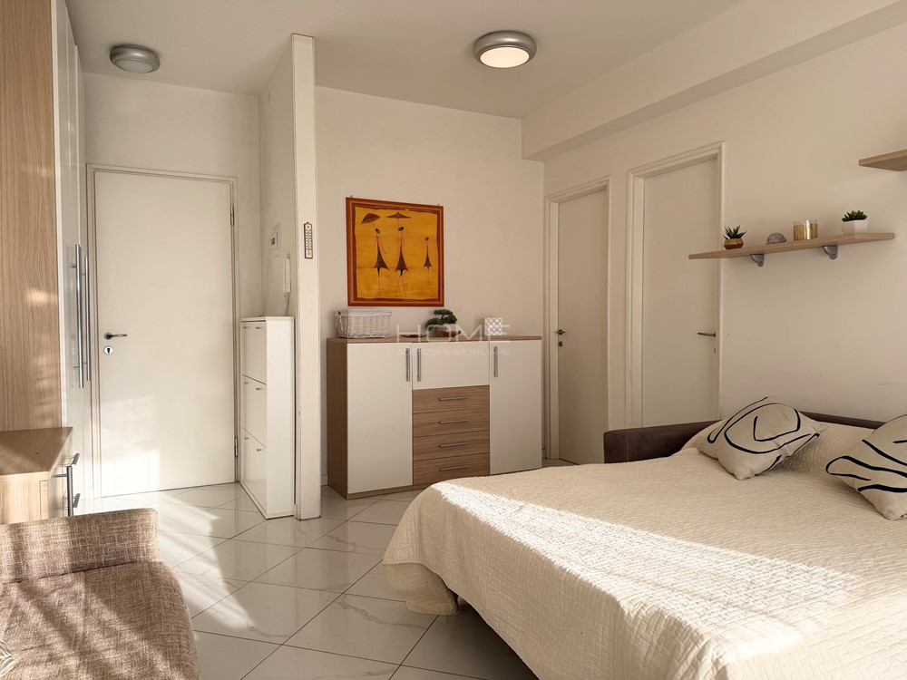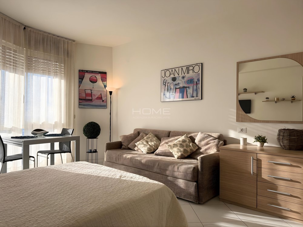 Appartamento monolocale situato al quattordicesimo piano, composto da un soggiorno e zona notte un letto matrimoniale, cucina con terrazzo, un bagno cieco con doccia e sanitari. È dotato di lavatrice, lavastoviglie e aria condizionata. Gli ospiti possono accedere alla piscina, e c'è un custode presente. Ideale per chi cerca comfort e praticità!