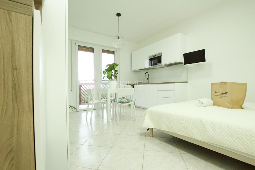Appartamento monolocale situato all'ottavo piano, composto da un soggiorno con angolo cottura, un letto matrimoniale, un ripostiglio e un bagno cieco con doccia e sanitari. È dotato di lavatrice e aria condizionata. Gli ospiti possono accedere alla piscina, e c'è un custode presente. Ideale per chi cerca comfort e praticità!