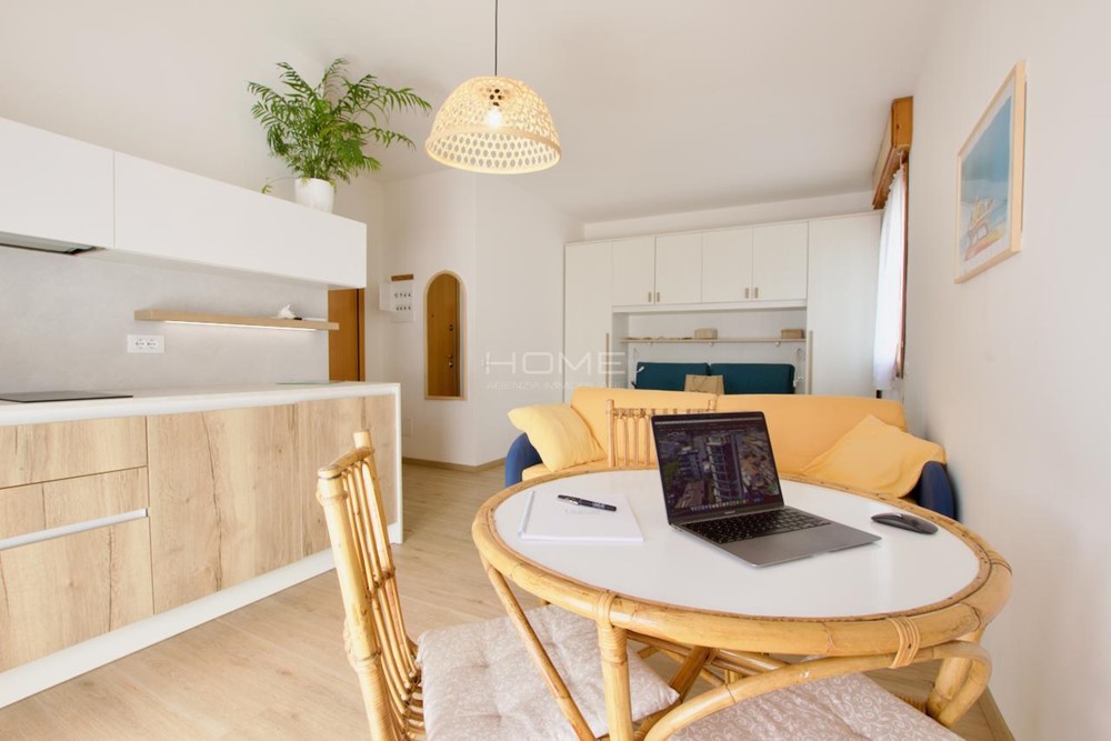 Questo monolocale, situato al secondo piano senza ascensore, è stato completamente ristrutturato. L’ingresso presenta un portoncino blindato. Il soggiorno è luminoso e include un angolo cottura con piano a induzione e un tavolo da pranzo. La terrazza è ideale per mangiare all’aperto. Il monolocale è arredato con un letto matrimoniale, una armadiatura a ponte e un divano letto. Il bagno è completo di WC e doccia. L’aria condizionata e la lavatrice assicurano comfort e praticità. In aggiunta, sarà fornito un posto spiaggia, perfetto per una vacanza rilassante vicino al mare. Il posto auto è condiminiale e non garantito.