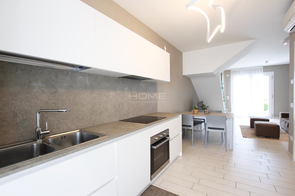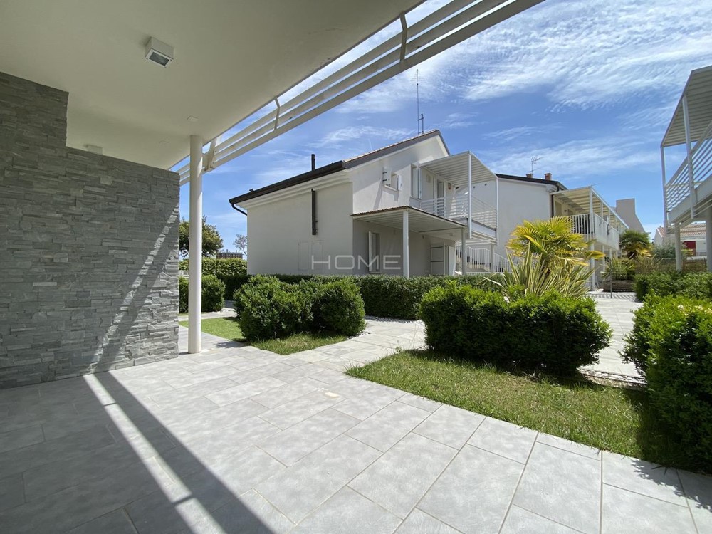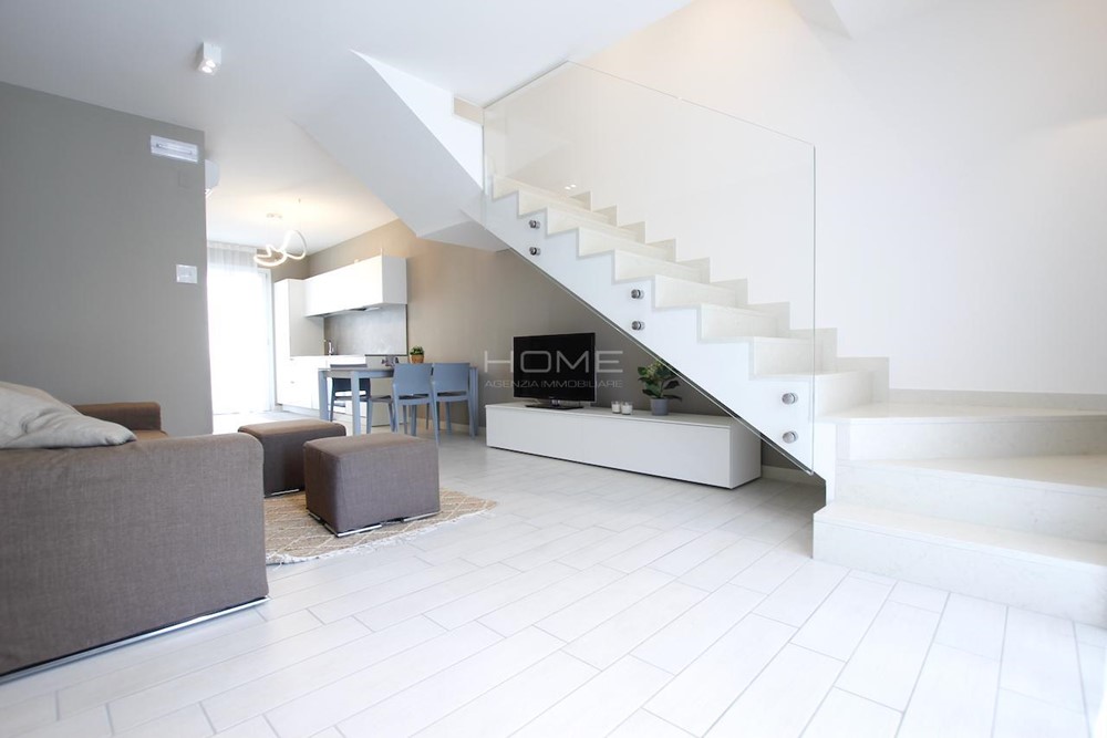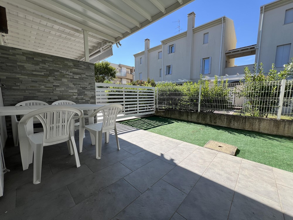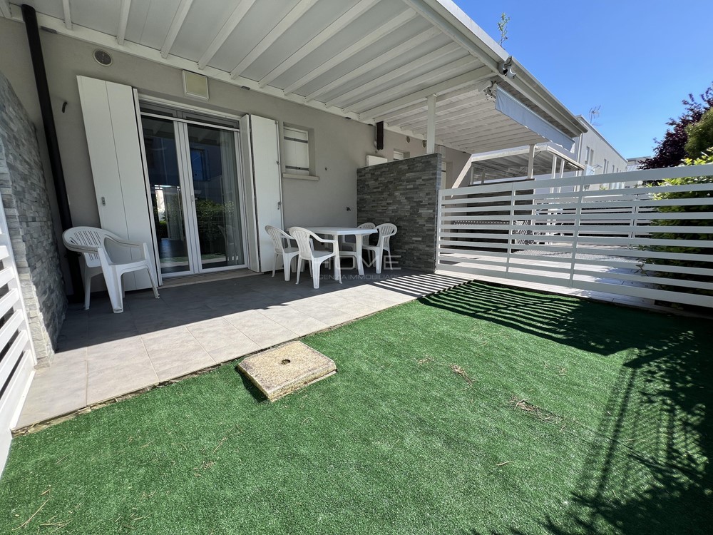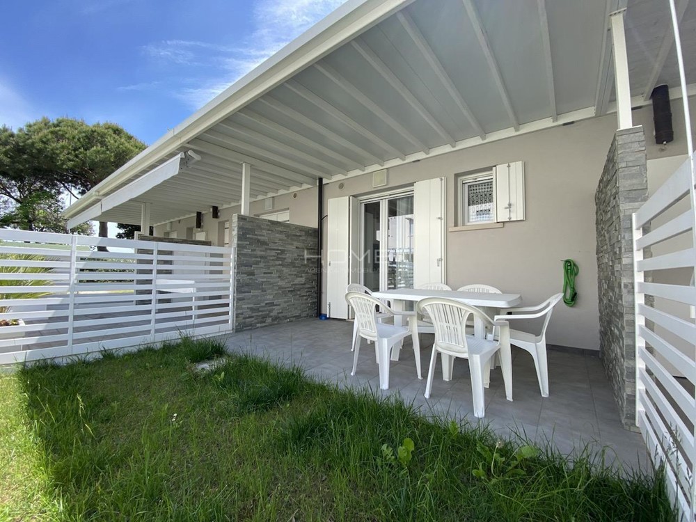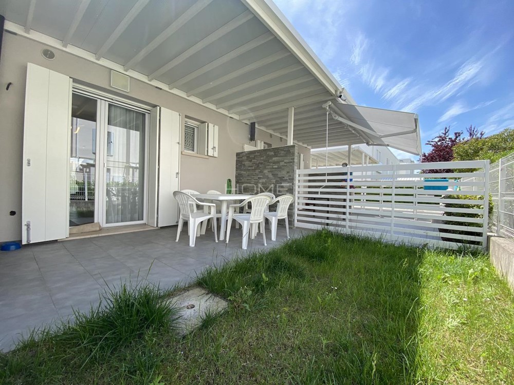 Villetta duplex al piano terra, così composta: Un portico anteriore accoglie l'ingresso che si apre su un ampio soggiorno dotato di divano, mobile TV e angolo cottura. Il bagno, luminoso e finestrato, è completo di doccia e sanitari. A completare il piano, un giardino privato. Salendo le scale, si accede alla zona notte, che comprende una camera matrimoniale con terrazzo, una cameretta con due letti singoli e un secondo bagno con doccia e sanitari. L'immobile è equipaggiato con lavastoviglie, lavatrice e aria condizionata, e dispone di un posto auto.